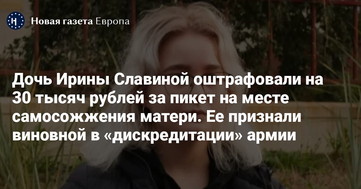 Нижегородский районный суд оштрафовал на 30 тысяч рублей Маргариту Мурахтаеву — дочь погибшей нижегородской журналистки Ирины Славиной — по делу о «дискредитации» вооруженных сил РФ (ст. 20.3.3 ч.1 КоАП). Об этом сообщила сама Мурахтаева.