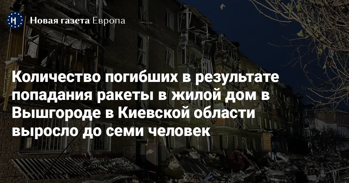 Количество погибших в результате попадания ракеты в жилой дом в Вышгороде в Киевской области выросло до семи человек