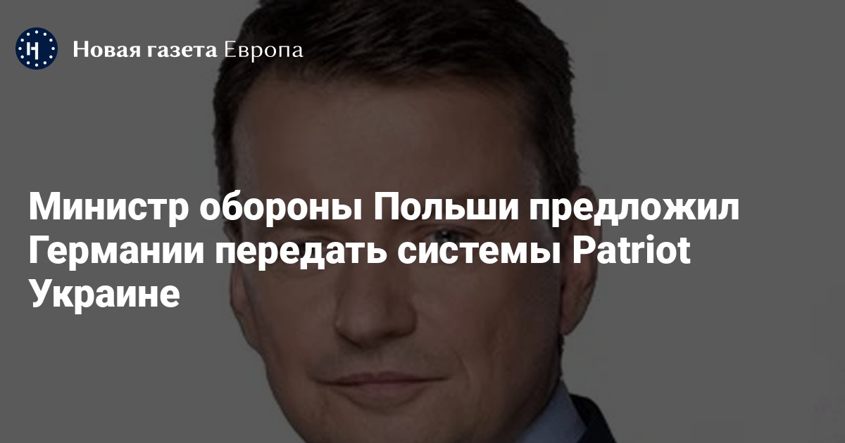 Министр обороны Польши Мариуш Блащак попросил Германию передать Украине ЗРК Patriot, предложенные ранее Варшаве. Об этом он сообщил в твиттере.