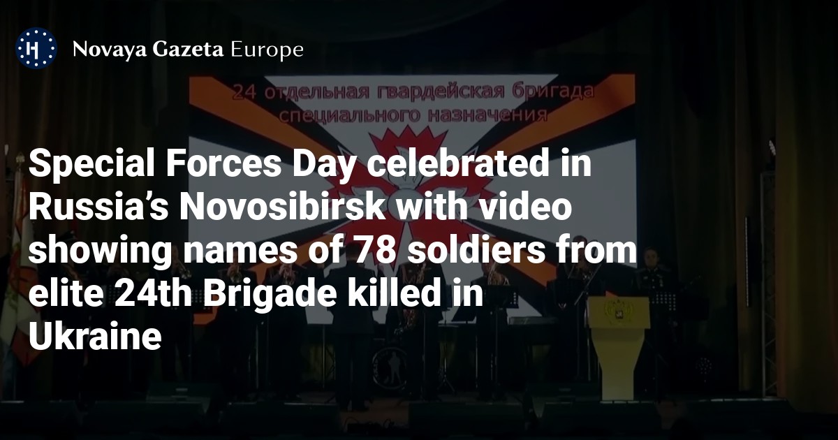 During celebrations held for Spetsnaz (Russian special forces) Day in the Shilovsky garrison in the Russian city of Novosibirsk, a video was shown featuring names of 78 killed soldiers who had served in the 24th Separate Guards Special Purpose Brigade. The video was posted on the social media page of the Novosibirsk district administration.
