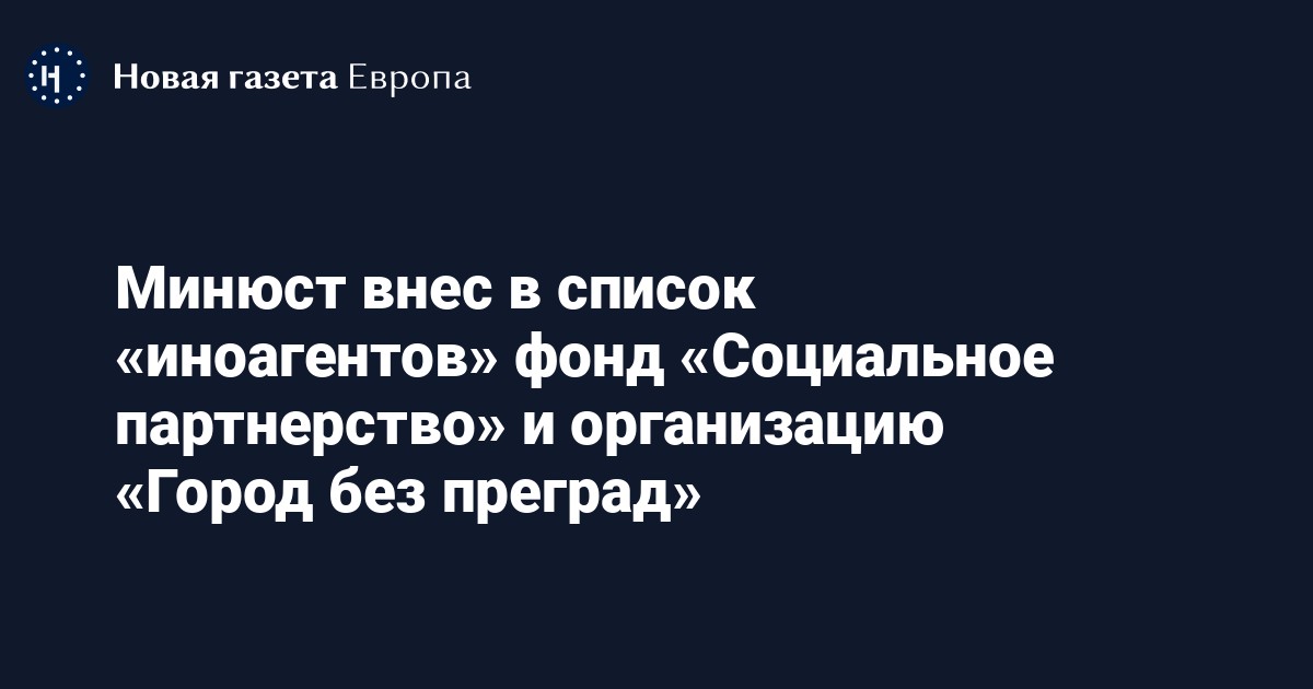 Министерство юстиций включило ООО «Город без преград» в реестр СМИ-иноагентов и благотворительный фонд «Социальное партнерство» в реестр НКО-«иноагентов».