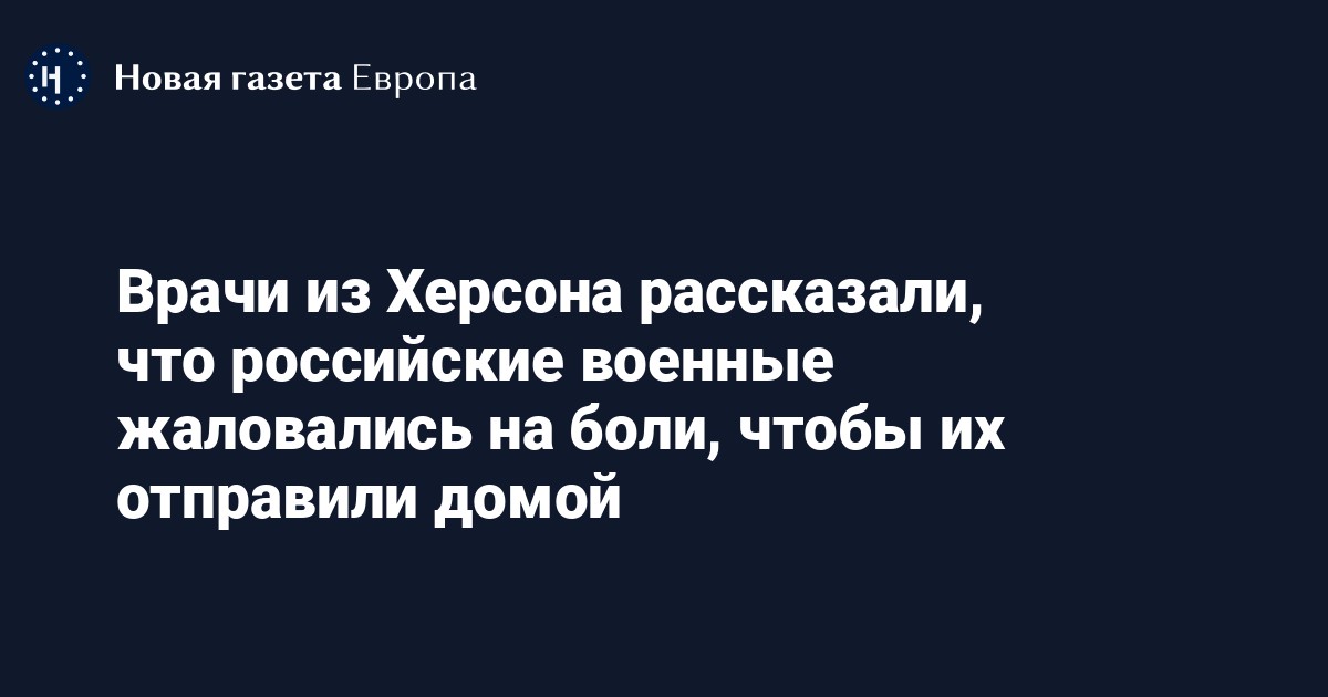 Медики из херсонской городской клинической больницы имени Афанасия и Ольги Тропиных («Тропинки») рассказали, что во время оккупации города российские военные жаловались на боли в надежде отправиться домой. Об этом говорится в материале издания The Wall Street Journal.