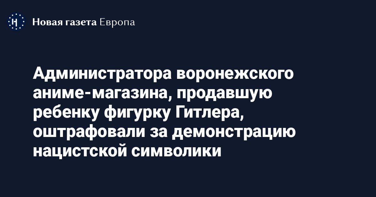 Администратора воронежского аниме-магазина, продавшую ребенку фигурку Гитлера, оштрафовали за демонстрацию нацистской символики