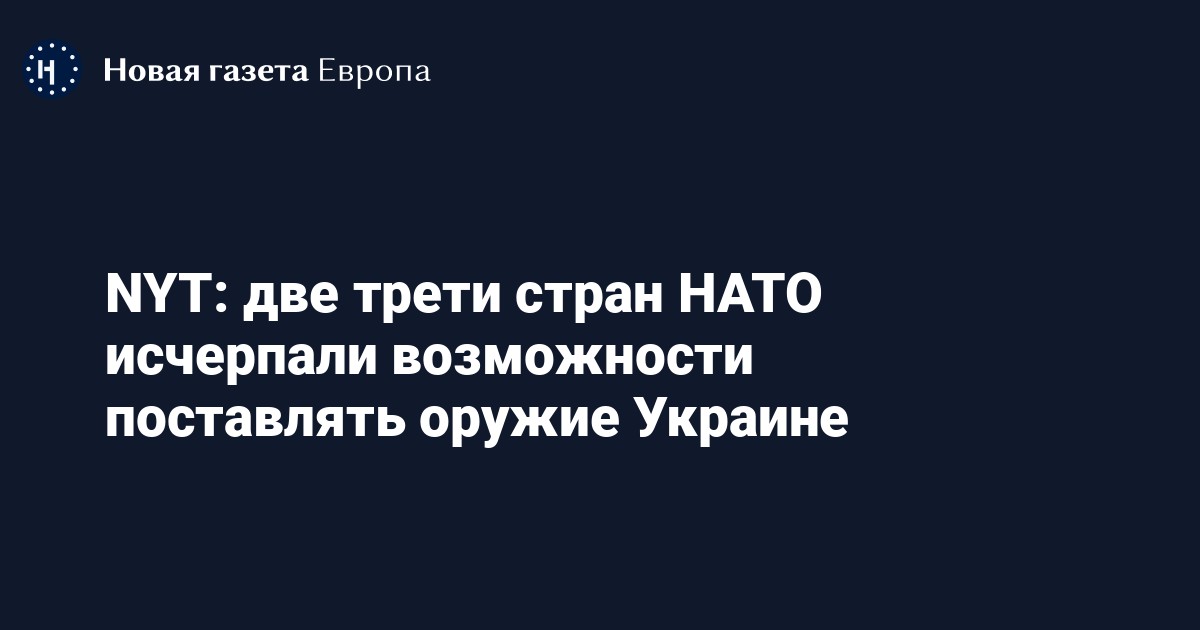 20 из 30 стран-членов НАТО исчерпали свои военные ресурсы для поставки оружия в Украину. Об этом пишет The New York Times со ссылкой на представителя альянса.