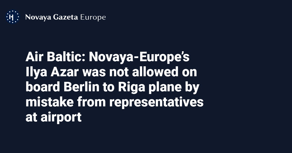 Ilya Azar, a journalist for Novaya Gazeta Europe, was denied entry to a flight from Berlin to Riga due to a mistake from AirBaltic’s representatives at Berlin Airport, the air company says on Twitter.