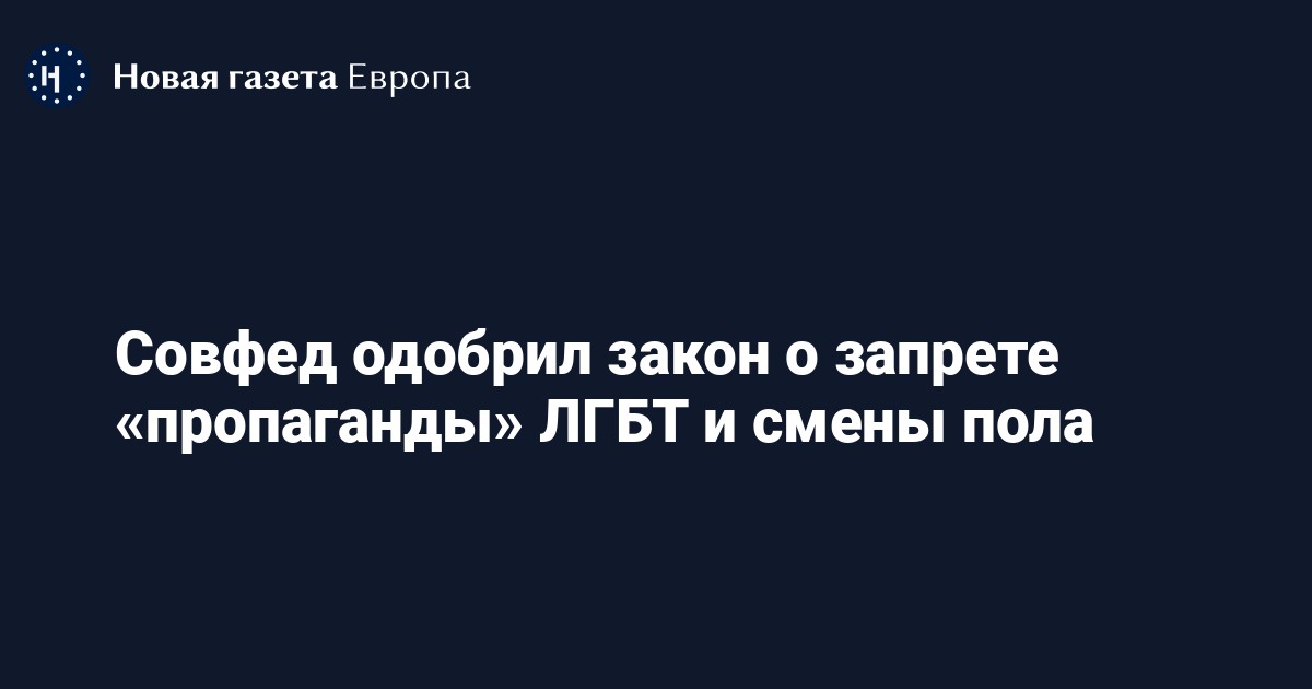 Члены Совета Федерации единогласно одобрили пакет законов о запрете «пропаганды» ЛГБТ и смены пола. Об этом заявили в ходе заседания Совфеда.