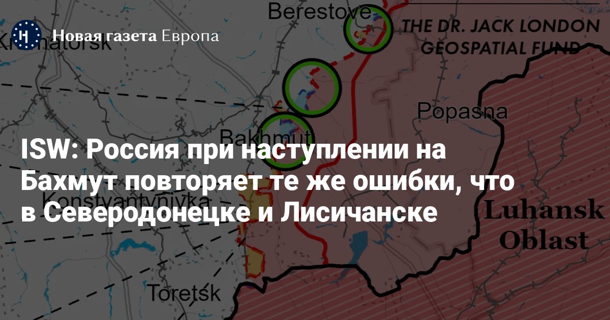 Эта схема операций очень напоминает предыдущие попытки России взять Северодонецк и Лисичанск в начале войны», — пришли к выводу эксперты.