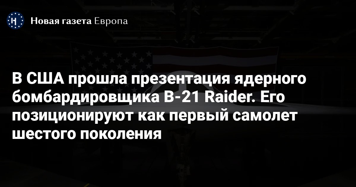 В США прошла презентация ядерного бомбардировщика типа «стелс» B-21 Raider, который стал первым американским бомбардировщиком за 30 лет. Об этом говорится в пресс-релизе военной компании Northrop Grumman, которая его произвела.
