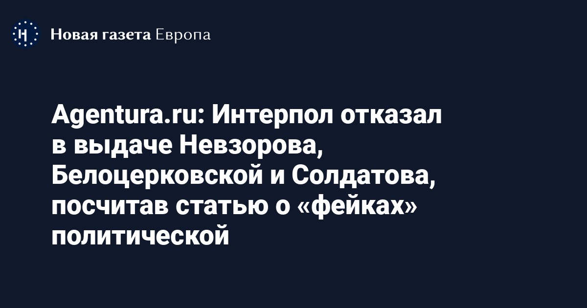 Журналист и главный редактор сайта Agentura.ru Андрей Солдатов опубликовал в телеграм-канале проекта письма МВД и Генпрокуратуры РФ, из которых следует, что Национальное центральное бюро Интерпола отказалось выдавать обвиняемых по статье о «фейках» про ВС РФ (207.3 УК), так как отнесло их к преступлениям политического характера.