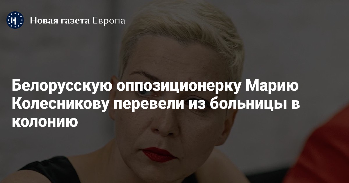 Белорусскую оппозиционерку Марию Колесникову перевели из больницы обратно в колонию. Об этом сообщил ее отец Александр Колесников.
