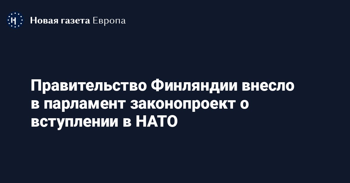 Правительство Финляндии внесло в парламент законопроект о вступлении в НАТО, сообщается на сайте МИД страны.