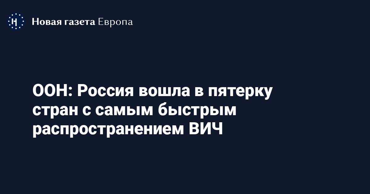 Россия по итогам 2021 года вошла в пятерку стран с самой высокой скоростью распространения ВИЧ-инфекции. Об этом говорится в новом докладе Объединенной программы ООН по ВИЧ/СПИДу (ЮНЭЙДС) и Европейского центра профилактики и контроля заболеваний (ECDC).