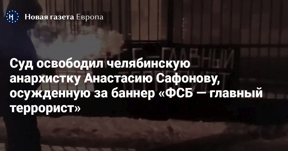 Центральный суд Челябинска освободил анархистку Анастасию Сафонову, приговоренную вместе со своим мужем к году и 9 месяцам заключения по ч. 2 ст. 213 УК (хулиганство по мотивам политической ненависти). Об этом сообщает глава правозащитной группы «Агора» Павел Чиков.