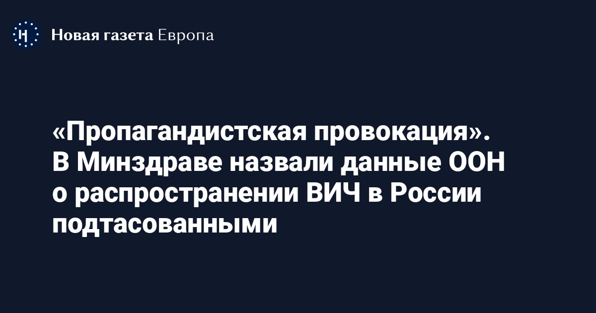 «В средствах массовой информации опубликованы якобы данные ЮНЭЙДС, которые включают Российскую Федерацию в пятерку стран мира по темпам распространения ВИЧ-инфекции, что не соответствует действительности и является очередной пропагандистской провокацией, направленной против нашей страны», — говорится в сообщении.