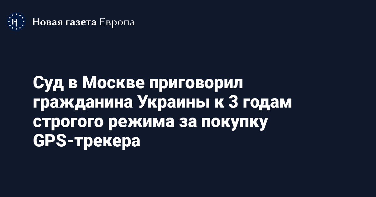 Дорогомиловский районный суд Москвы приговорил гражданина Украины Андрея Пасечника к 3 годам строгого режима по делу о незаконном обороте техсредств, предназначенных для негласного получения информации (ст. 138.1 УК), за покупку GPS-трекера. Об этом сообщает РИА Новости, соответствующая карточка опубликована на сайте московских судов.