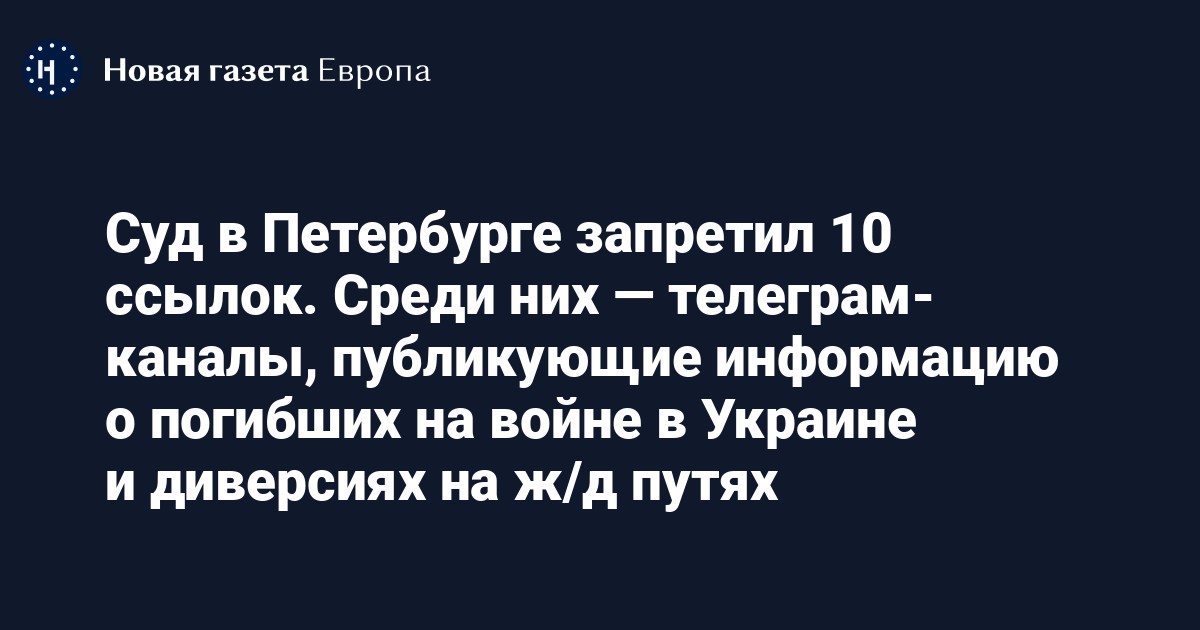 Сами телеграм-каналы не называются, но журналистам «Медиазоны» удалось узнать в пресс-службе суда пять из десяти запрещенных ресурсов. Это канал антивоенного движения «Останови вагоны», в котором рассказывают о диверсиях на железнодорожных путях; паблик «Горюшко», где публикуется информаций о погибших на войне в Украине из открытых источников; телеграм-канал «Омерзительные рашисты», в котором выкладывают фотографии убитых российских солдат; а также новостной ресурс «Украина Сейчас: новости, война, Россия».