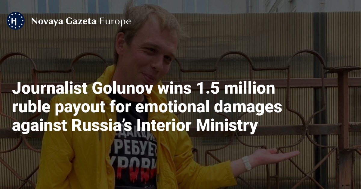 A Moscow court has ruled for Ivan Golunov, a journalist, in his lawsuit against Russia’s Interior Ministry, and awarded emotional damages in the amount of 1.5 million rubles (€22.750), Golunov’s lawyer Sergey Badamshin and Interfax report.