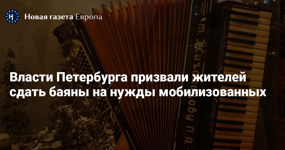 При поддержке Министерства обороны РФ в Петербурге планируют собрать баяны, аккордеоны, губные гармоники, гитары и балалайки «в целях поддержки боевого духа, сплочения, воодушевления на подвиги, морально-психологической разгрузки [мобилизованных]».