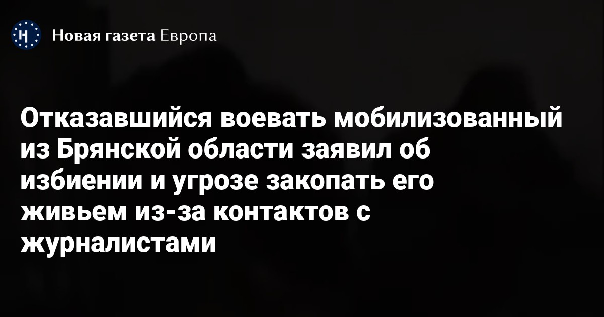 Мобилизованный из Брянской области 25-летний Роман Мартынов рассказал об избиении и угрозе закопать его живьем из-за контактов с журналистами, рассказывает глава «Агоры» Павел Чиков в своем телеграм-канале.
