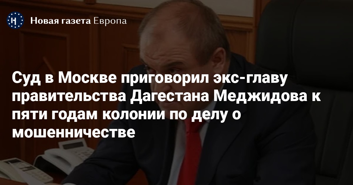Мещанский суд Москвы приговорил к пяти годам колонии общего режима бывшего председателя правительства Дагестана Мухтара Меджидова по делу об особо крупном мошенничестве (ч. 4 ст. 159), сообщает «Интерфакс».