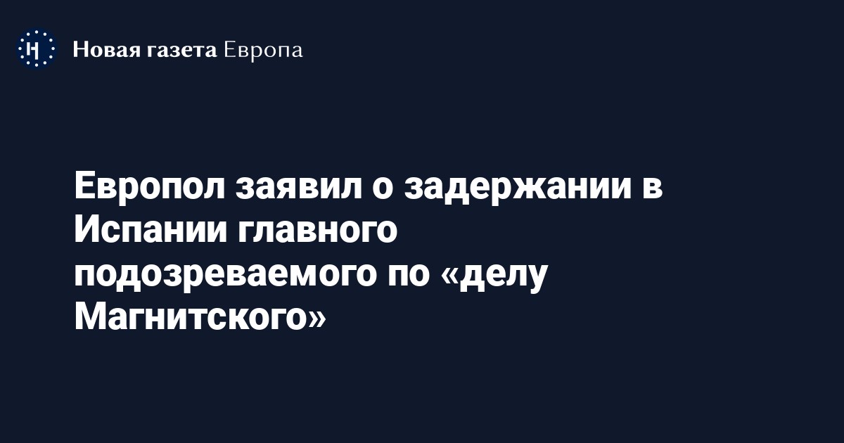 Главного подозреваемого по «делу Магнитского» задержали на Канарских островах, сообщил Европол.
