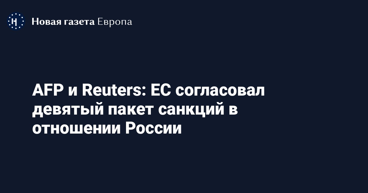 Также о согласовании девятого пакета антироссийских санкций сообщил главный редактор «Радио Свобода» в Европе Рикард Йозвяк. Письменная процедура согласования закончится завтра до полудня, написал он.