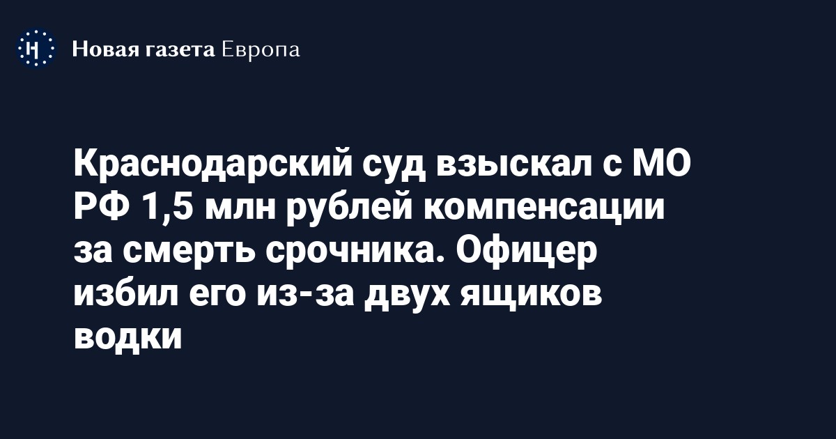 Прикубанский районный суд Краснодара взыскал с Минобороны России 1,5 млн рублей в пользу матери срочника Степана Цымбала, найденного мертвым после избиения офицером в 2019 году. Об этом сообщает правозащитный проект «Аксиома»; соответствующее решение опубликовано на сайте суда.