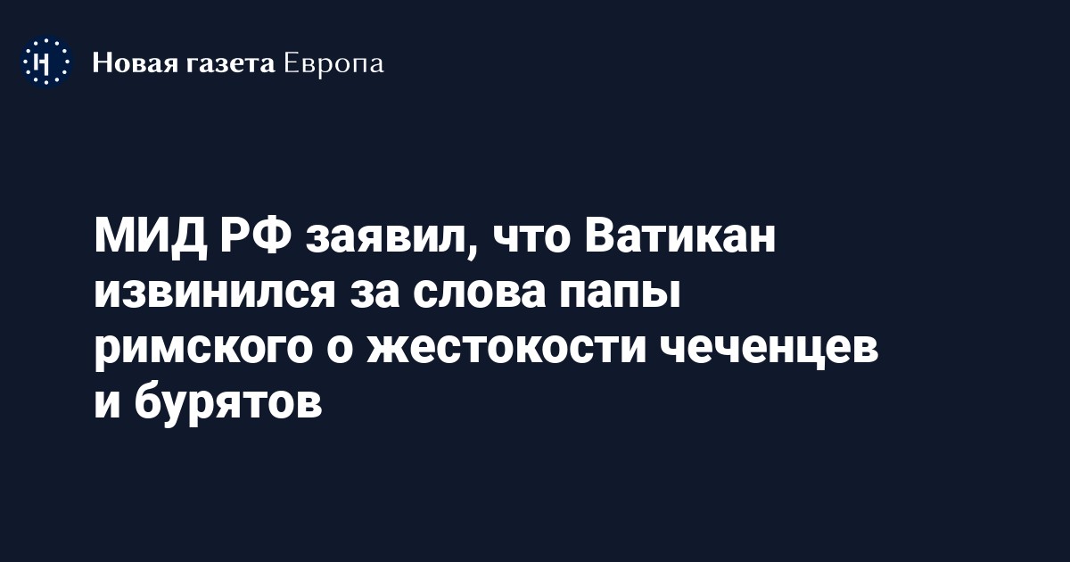 Ватикан принес извинения России за слова папы римского Франциска о жестокости чеченцев и бурятов на войне в Украине, заявила официальный представитель МИДа Мария Захарова.