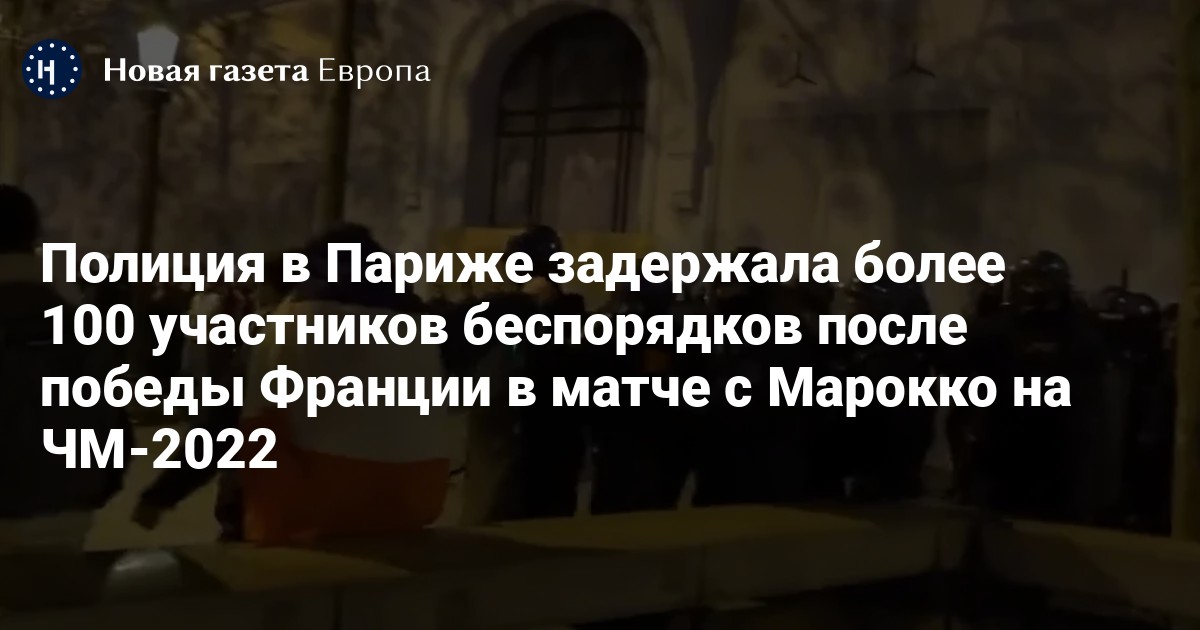 Полиция в Париже задержала более 100 участников беспорядков после победы Франции в матче с Марокко на Чемпионате мира по футболу, сообщает Le Figaro со ссылкой на полицию и MSN. Всего Парижской агломерации задержали 115 человек.