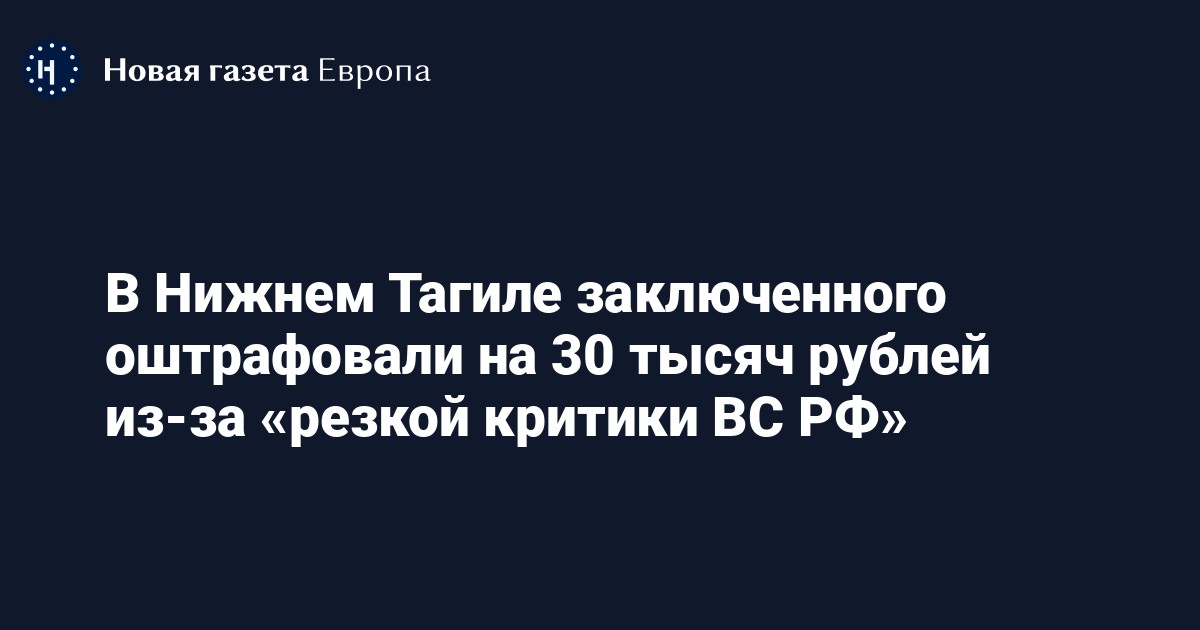 В Нижнем Тагиле заключенного оштрафовали на 30 тысяч рублей из-за «резкой критики ВС РФ»