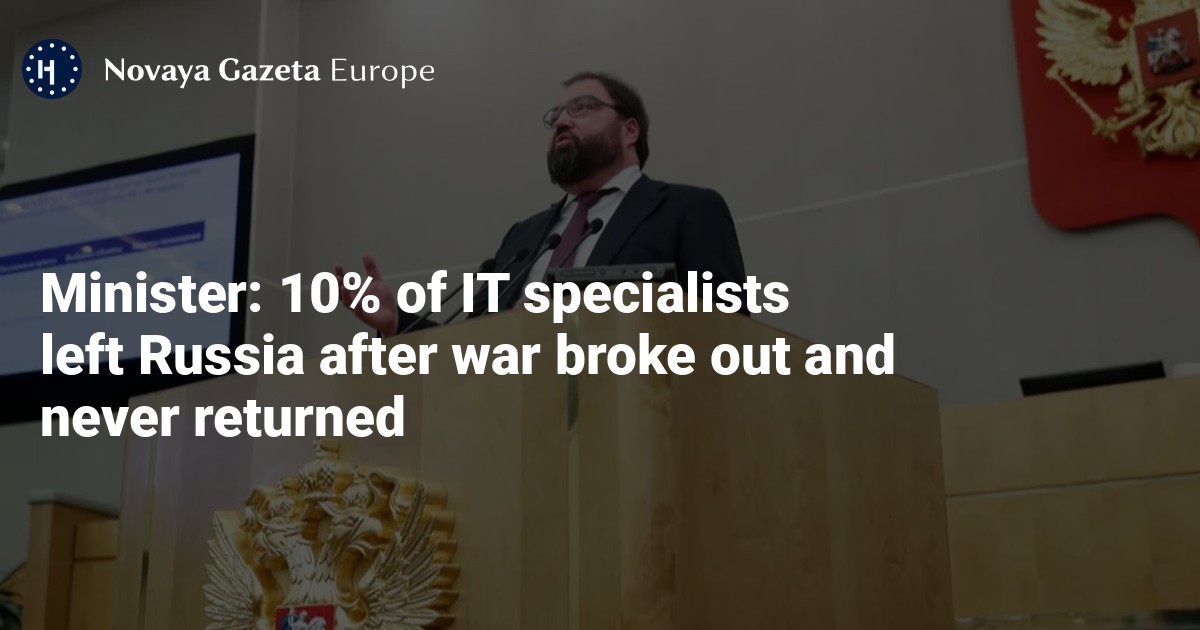 Up to 10% of the Russian IT workforce have left the country after Moscow invaded Ukraine and did not return, Russian Digital Development Minister Maksut Shadayev told the Russian State Duma (lower house of parliament) during a government question session.