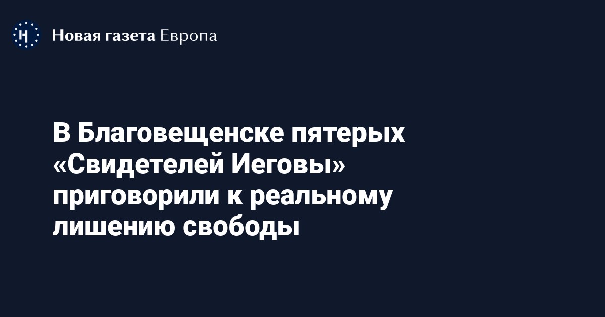 Суд в Благовещенске приговорил пятерых последователей «Свидетелей Иеговы» к реальному лишению свободы по обвинению в осуществлении деятельности экстремистской организации. Об этом сообщается на сайте суда.