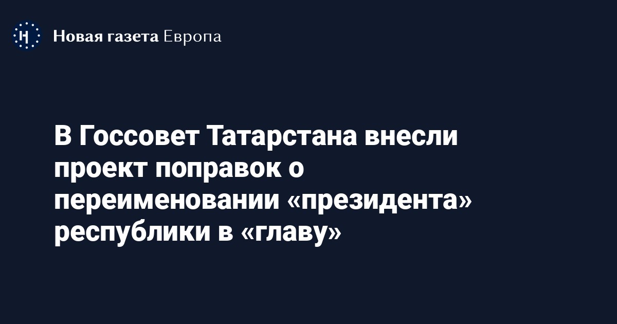 «Слова "Президент Республики Татарстан" заменить словами "Глава Республики Татарстан"», — говорится в тексте документа.