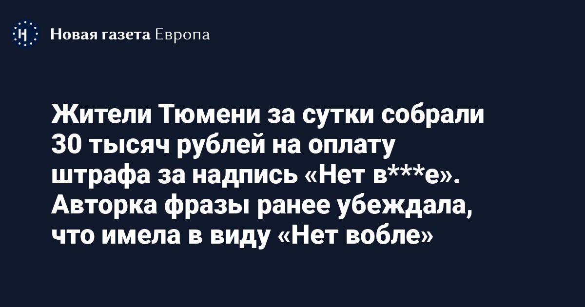 Жители Тюмени за сутки собрали 30 тысяч рублей на погашение штрафа Алисы Климентовой за надпись «Нет в***е» на асфальте. Об этом сообщил местный портал 72.ru.