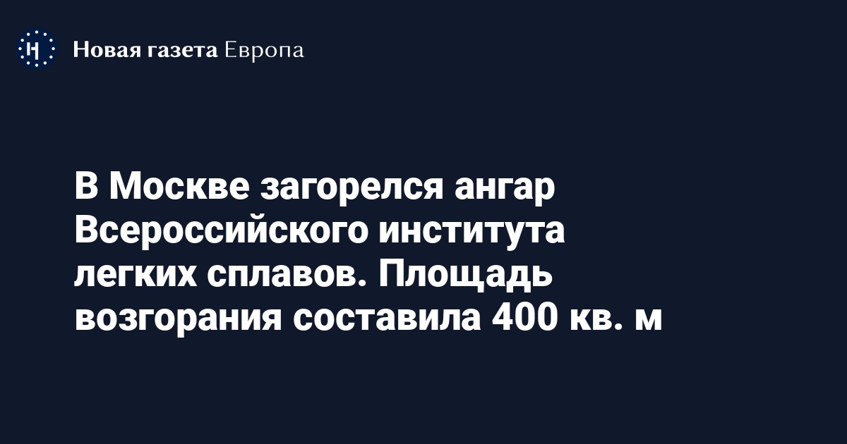 В Москве загорелся ангар Всероссийского института легких сплавов. Площадь возгорания составила 400 кв. м. Об этом сообщает ТАСС со ссылкой на экстренные службы.