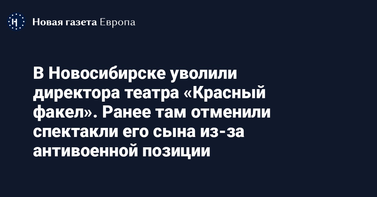 В Новосибирске уволили директора театра «Красный факел». Ранее там отменили спектакли его сына из-за антивоенной позиции