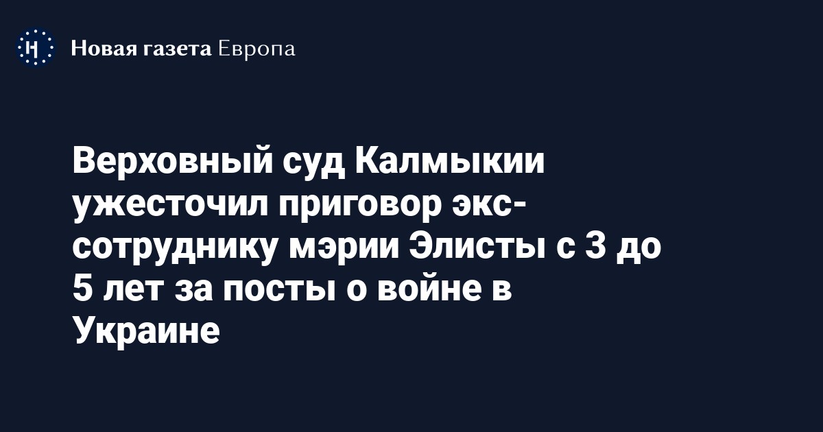 Верховный суд Калмыкии ужесточил приговор калмыцкому активисту и экс-сотруднику мэрии Элисты Алтану Очирову с трех лет колонии до пяти лет колонии по делу о «фейках» о российской армии (ч. 2 ст. 207.3 УК) из-за постов в телеграм-канале. Об этом сообщает проект «Сетевые Свободы».
