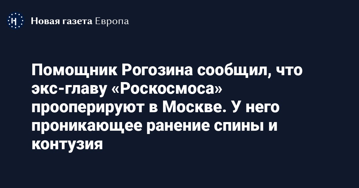 Экс-главу «Роскосмоса» Дмитрия Рогозина, раненого в результате ночного обстрела гостиницы в Донецке, прооперируют в московской больнице через несколько дней. Об этом сообщает РБК «Интерфакс» со ссылкой на помощника Рогозина.