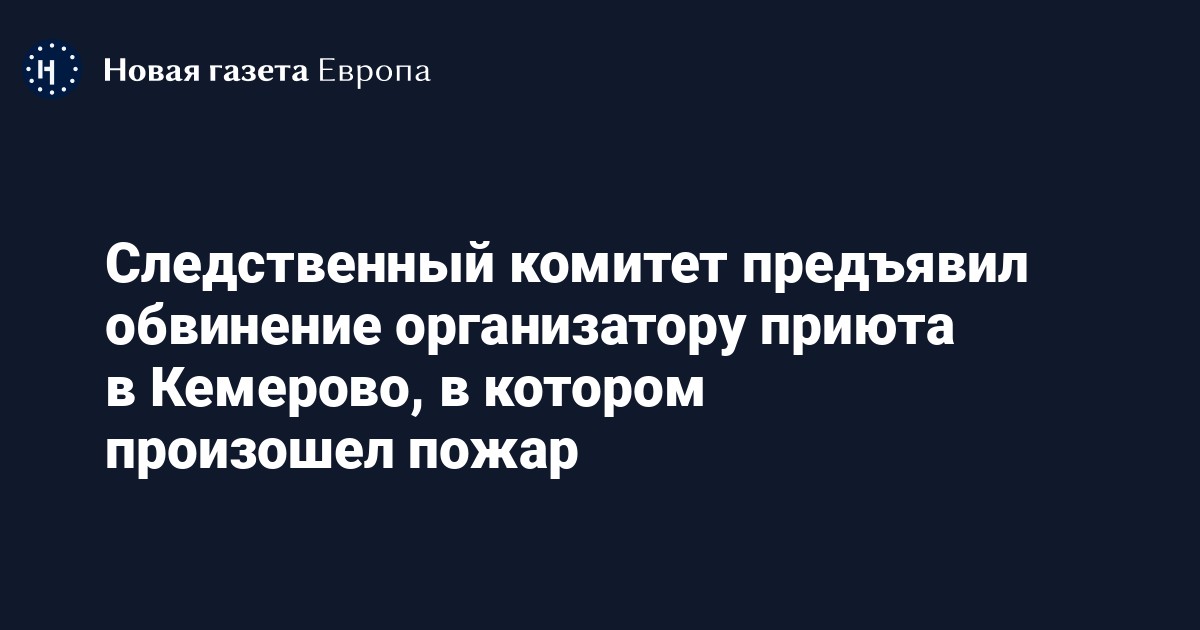 Следственный комитет по Кемеровской области предъявил обвинение 31-летнему организатору приюта для бездомных, в котором в результате пожара погибли как минимум 22 человека. Об этом сообщили в пресс-службе СК.