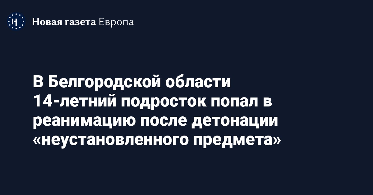 В селе Щетиновка Белгородской области 14-летний подросток попал в реанимацию после детонации «неустановленного предмета». Об этом сообщил глава региона Вячеслав Гладков в телеграм-канале.