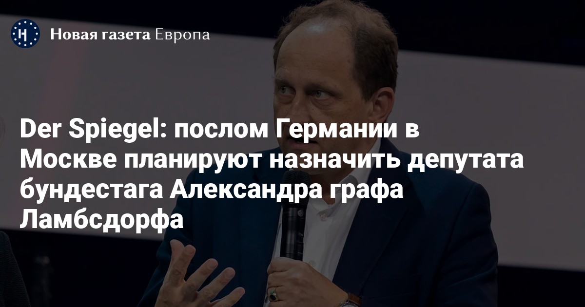 Новым послом Германии в России собираются назначить замглавы фракции Свободной демократической партии (СвДП) в бундестаге Александра графа Ламбсдорфа. Эту информацию подтвердили изданию Der Spiegel источники в правящей коалиции.