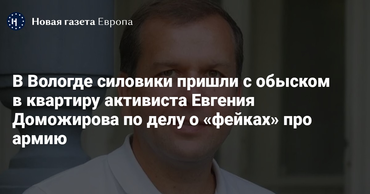 В Вологде силовики пришли с обыском к местному активисту Евгению Доможирову по делу о «фейках» про российскую армию (п. «д» ч. 2 ст. 207.3 УК), сообщил он в своем телеграм-канале.