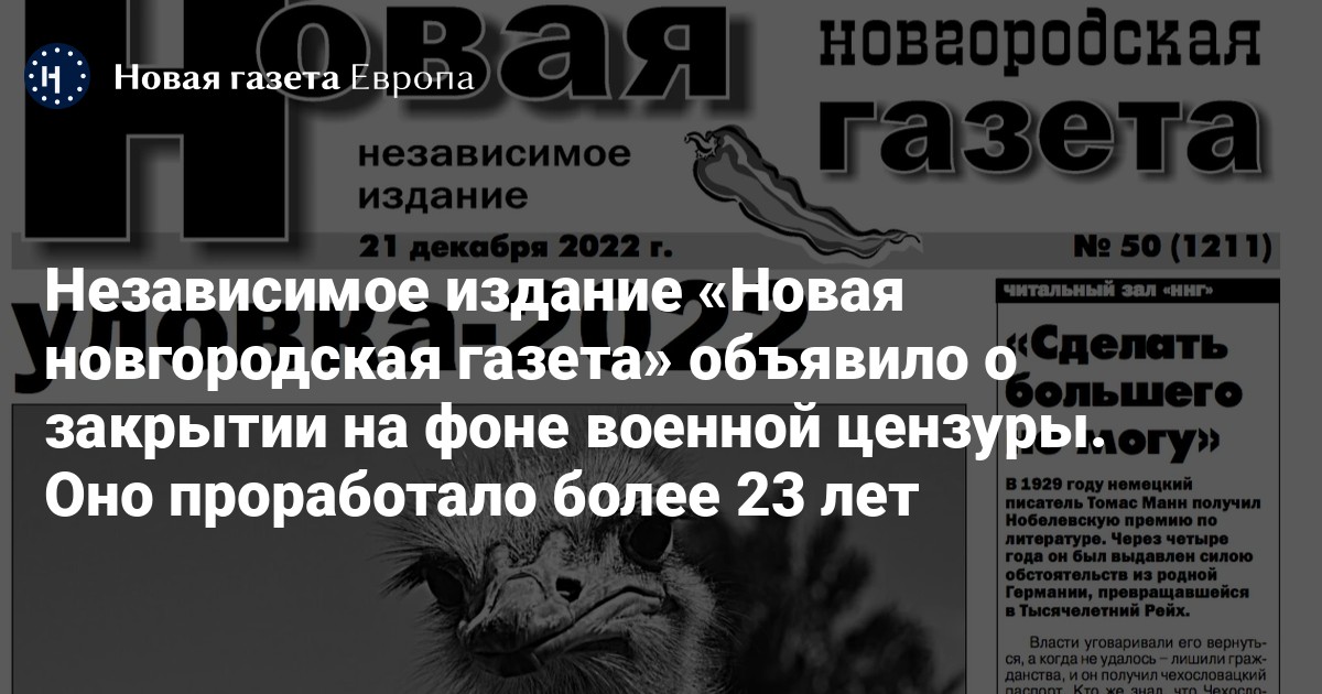 Старейшее независимое издание Новгородской области «Новая новгородская газета» объявило о закрытии.