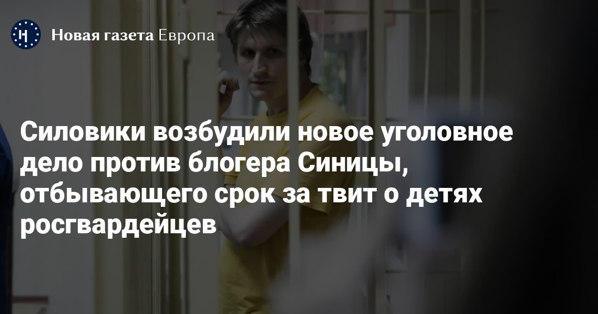 Правозащитный проект отмечает, что твиттер-аккаунт, фигурирующий в материалах дела, зарегистрирован в октябре 2022 года. Первый твит в нем размещен 13 октября — это цитата того самого твита о «детях нацгвардейцев», за который Синицу приговорили к пятилетнему сроку в 2019 году.