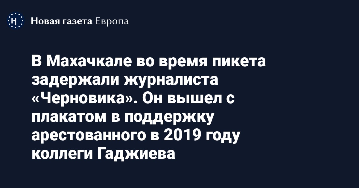 В Махачкале сотрудники полиции задержали журналиста газеты «Черновик» Магомеда Магомедова. Он стоял в одиночном пикете с плакатом в поддержку коллеги Абдулмумина Гаджиева, сообщила редакция «Черновика».