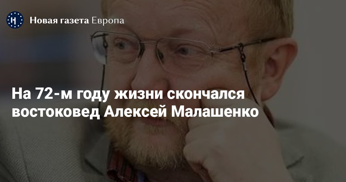 На 72-м году жизни скончался советский и российский востоковед, исламовед и политолог Алексей Малашенко. Об этом сообщил политолог Аркадий Дубнов на своей странице в фейсбуке.