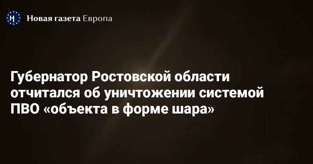 «Вчера около 22 часов работала система ПВО в 7 км от населённого пункта Султан Салы в Мясниковском районе. На высоте 2,5 км был обнаружен малоразмерный объект в форме шара, который свободно летел по ветру. Было принято решение о его ликвидации», — рассказал Голубев.