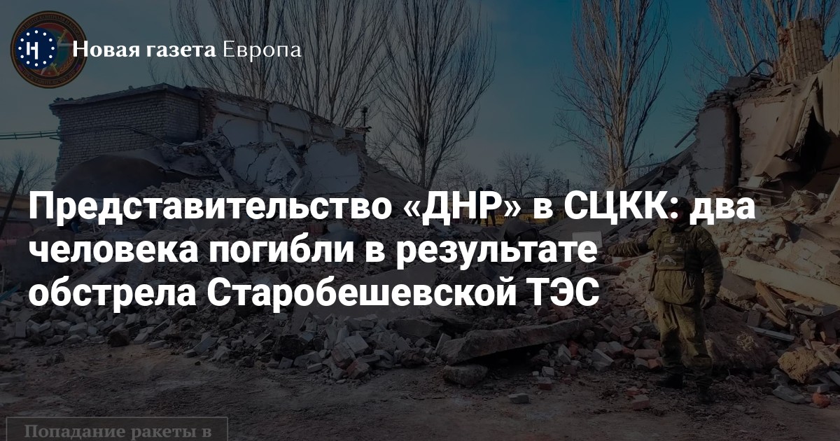 Два человека погибли в результате обстрела Старобешевской ТЭС в поселке Новый Свет в самопровозглашенной ДНР. Об этом сообщили в представительстве «республики» в Совместном центре по контролю и координации вопросов, связанных с «военными преступлениями Украины» (СЦКК).