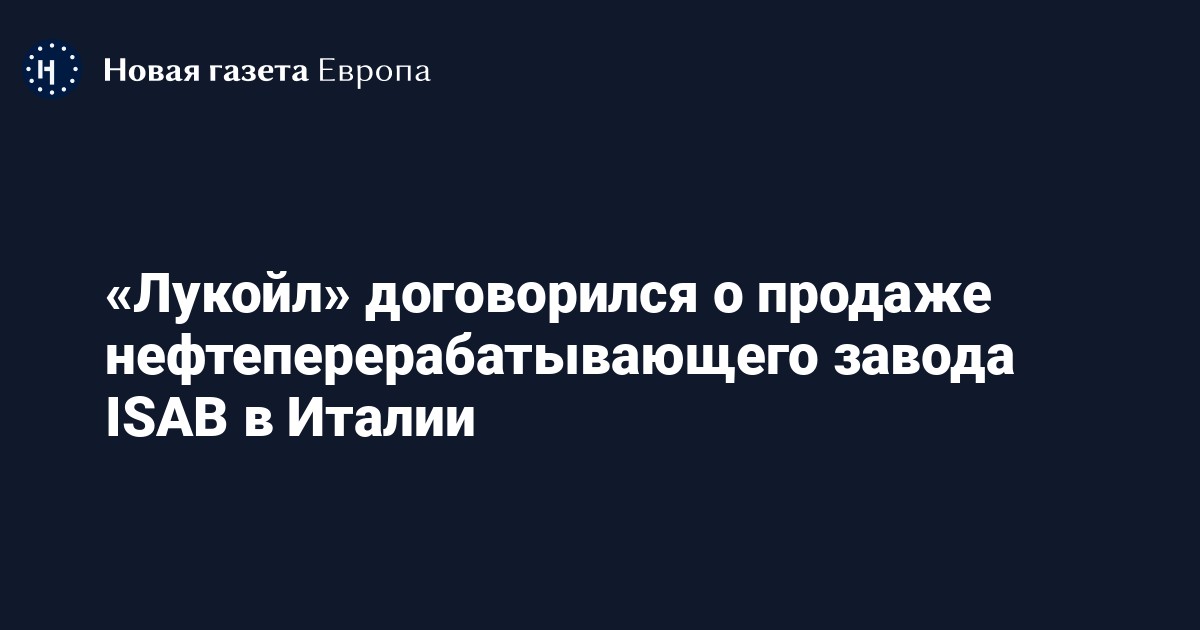 Дочернее предприятие «Лукойла» Litasco S.A. заключило соглашение с G.O.I. ENERGY о продаже нефтеперерабатывающего завода ISAB в Италии. Об этом сообщается говорится на сайте российского нефтепроизводителя.