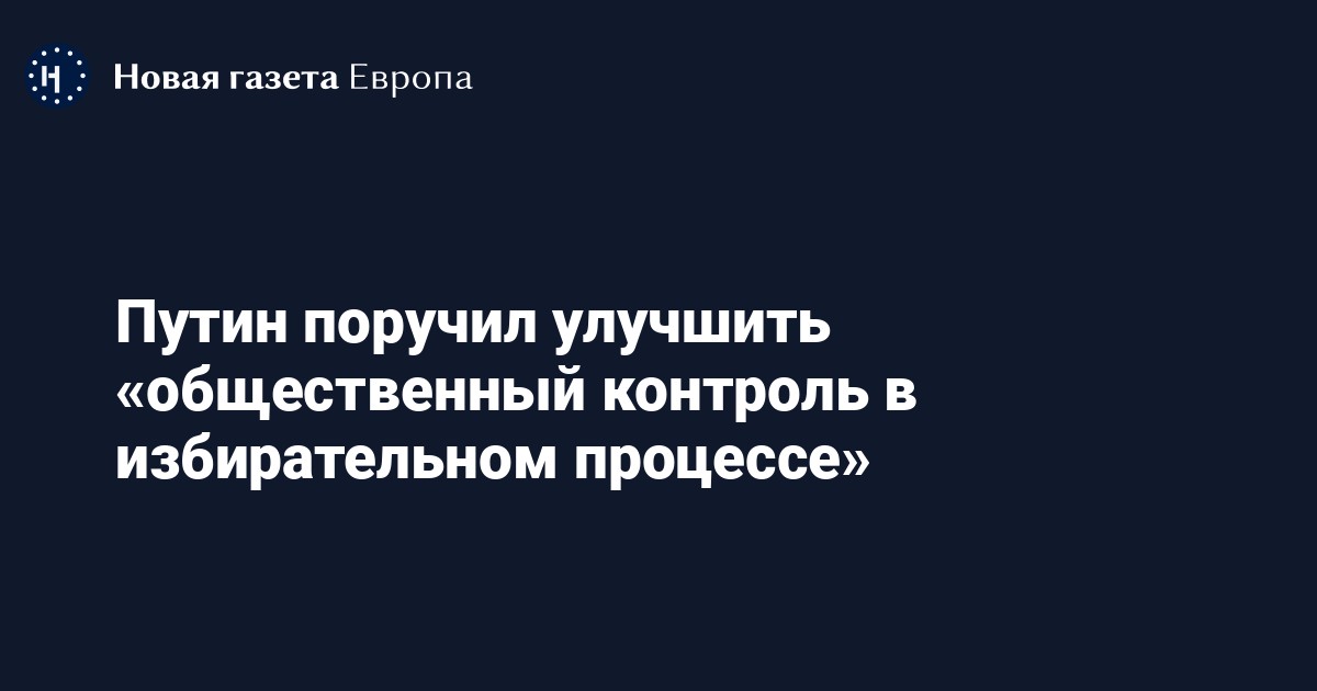 Администрации президента (АП) совместно с Центральной избирательной комиссией (ЦИК) Путин поручил «рассмотреть вопрос о совершенствовании механизмов общественного контроля в избирательном процессе». Ответственными за эту задачу назначены первый заместитель руководителя АП Сергей Кириенко, глава ЦИК Элла Памфилова и Уполномоченный по правам человека Татьяна Москалькова.